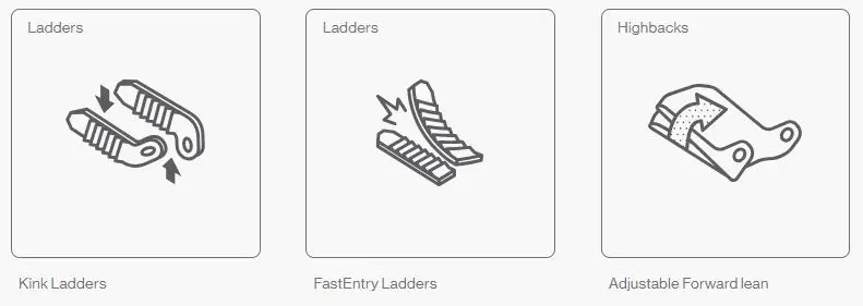 FastEntry Ladders er designet til let at komme ind og ud af bindingen. Remmens konkave form er designet til at åbne sig, når den slippes. FastEntry sikrer, at du ikke vil komme til at kæmpe for at komme ind og ud af dine bindinger, hvilket giver dig mere tid til riding.