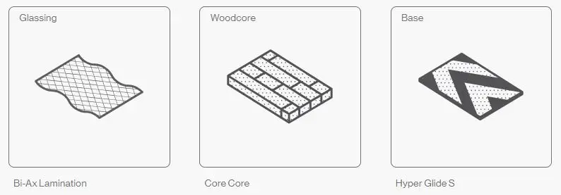 En traditionel tovejsvævning, der er let, stærk og legende; det holder brættet skarpt uden at tilføje vridningsstivhed, hvilket er fantastisk til at blive kreativ.