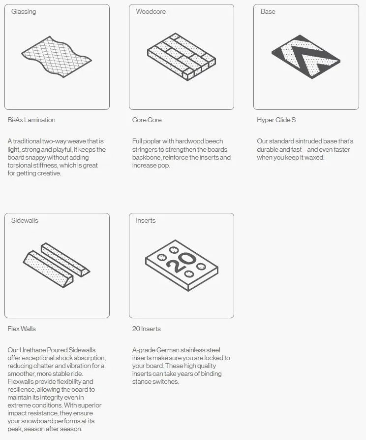 Bataleon Minishred Junior Snowboard er et rigtigt snowboard til de mindste. Profilen er camber, så det kan holde kant. Flexen i boardet er ligeledes blød så den passer til den lave vægt. Så når den lille pode skal med på skiferie er dette en god ting at have med.