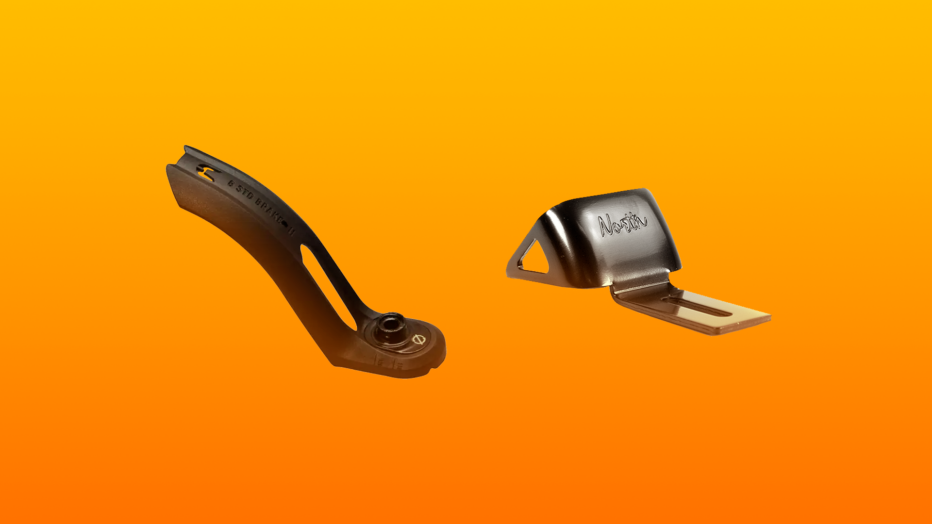 - Flex Fender-bremser – Fremstillet af et fleksibelt metal, der presses mod hjulet for at bremse. De er populære blandt trickløbehjul, da de er lette og slidstærke.