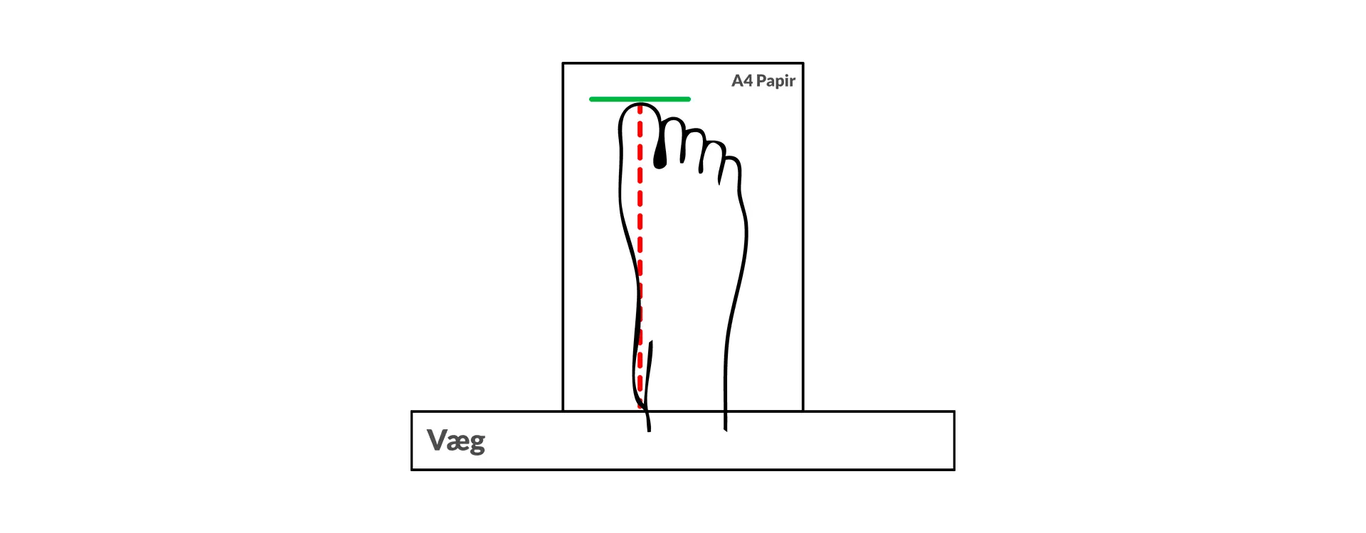 - Læg et stykke papir under foden, så hælen flugter med papirets kant.
